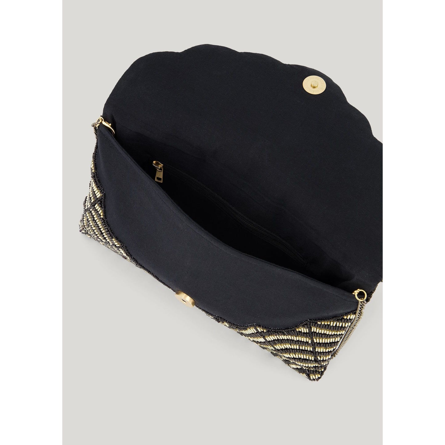 Lovely 2 tone beaded scalloped bag, can be used as a clutch or chain handle included.