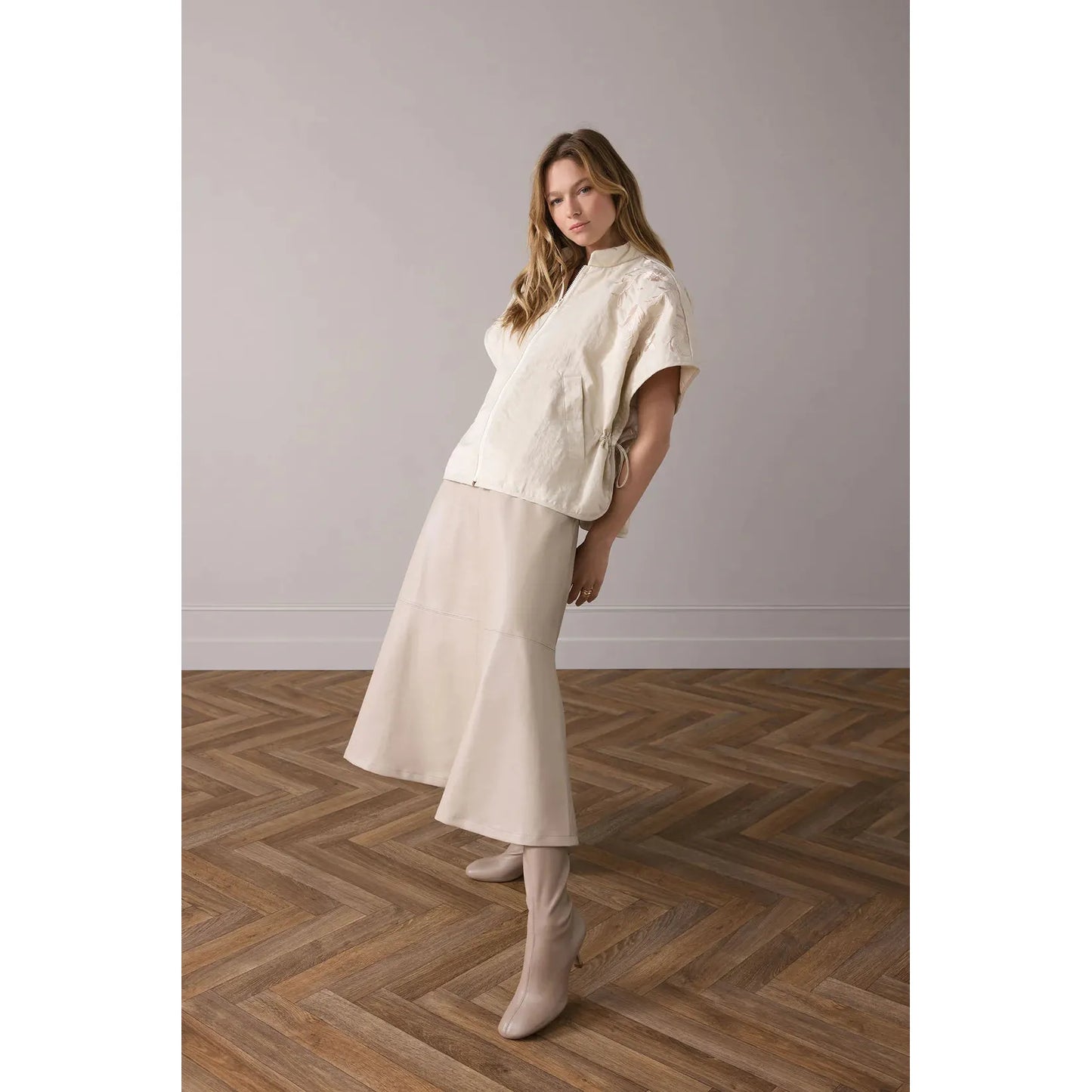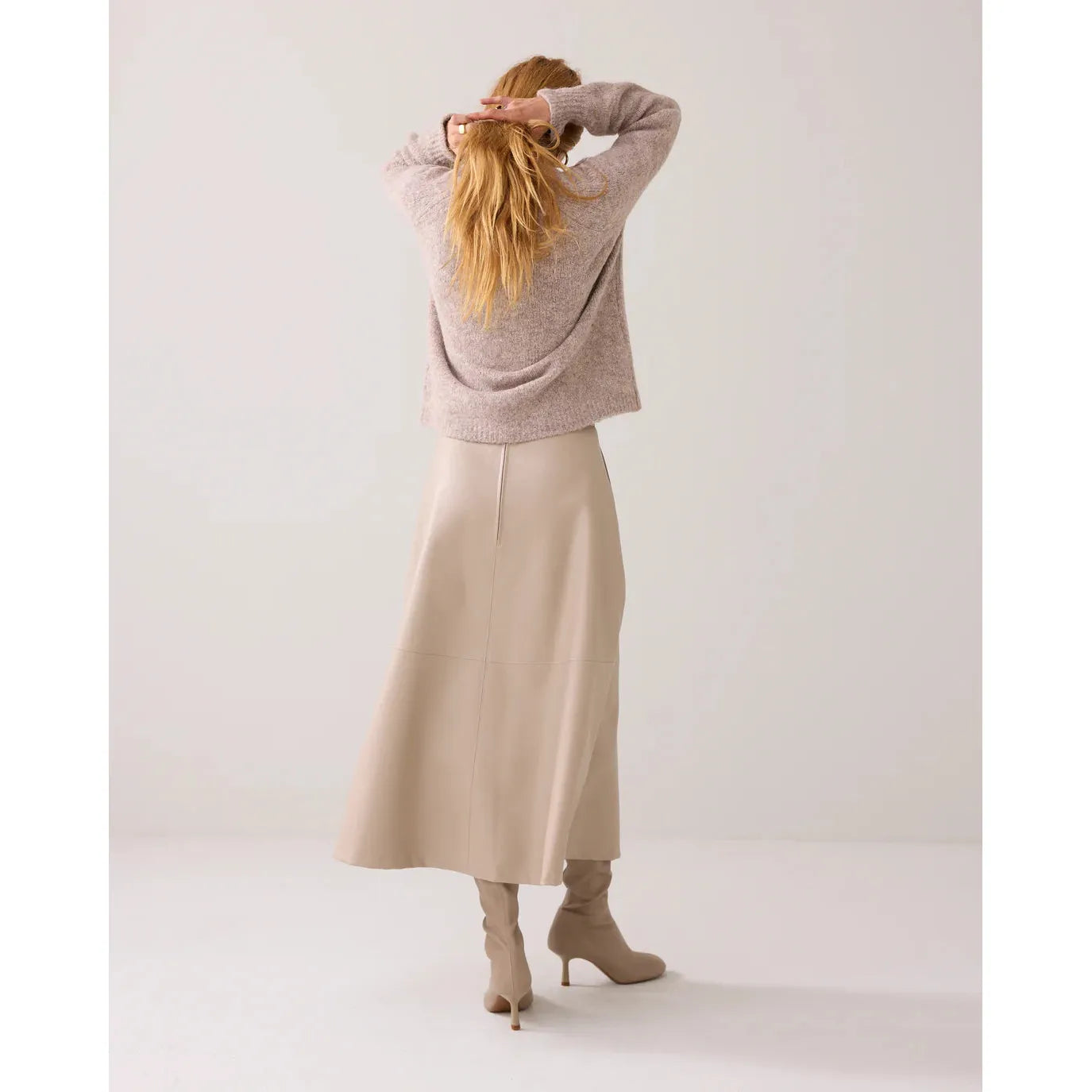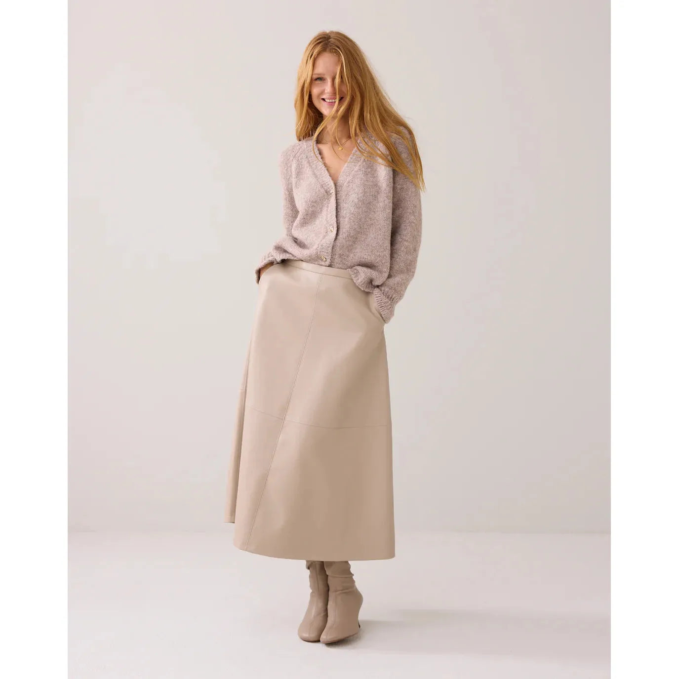 Summum Beige Faux Leather A-Line Skirt with Seams and Pockets