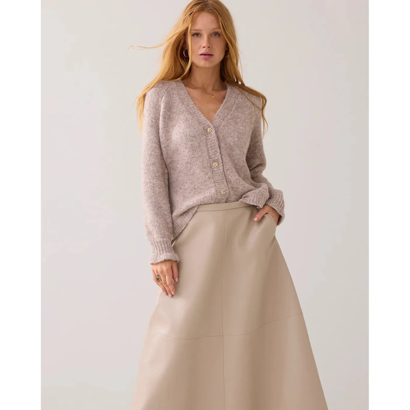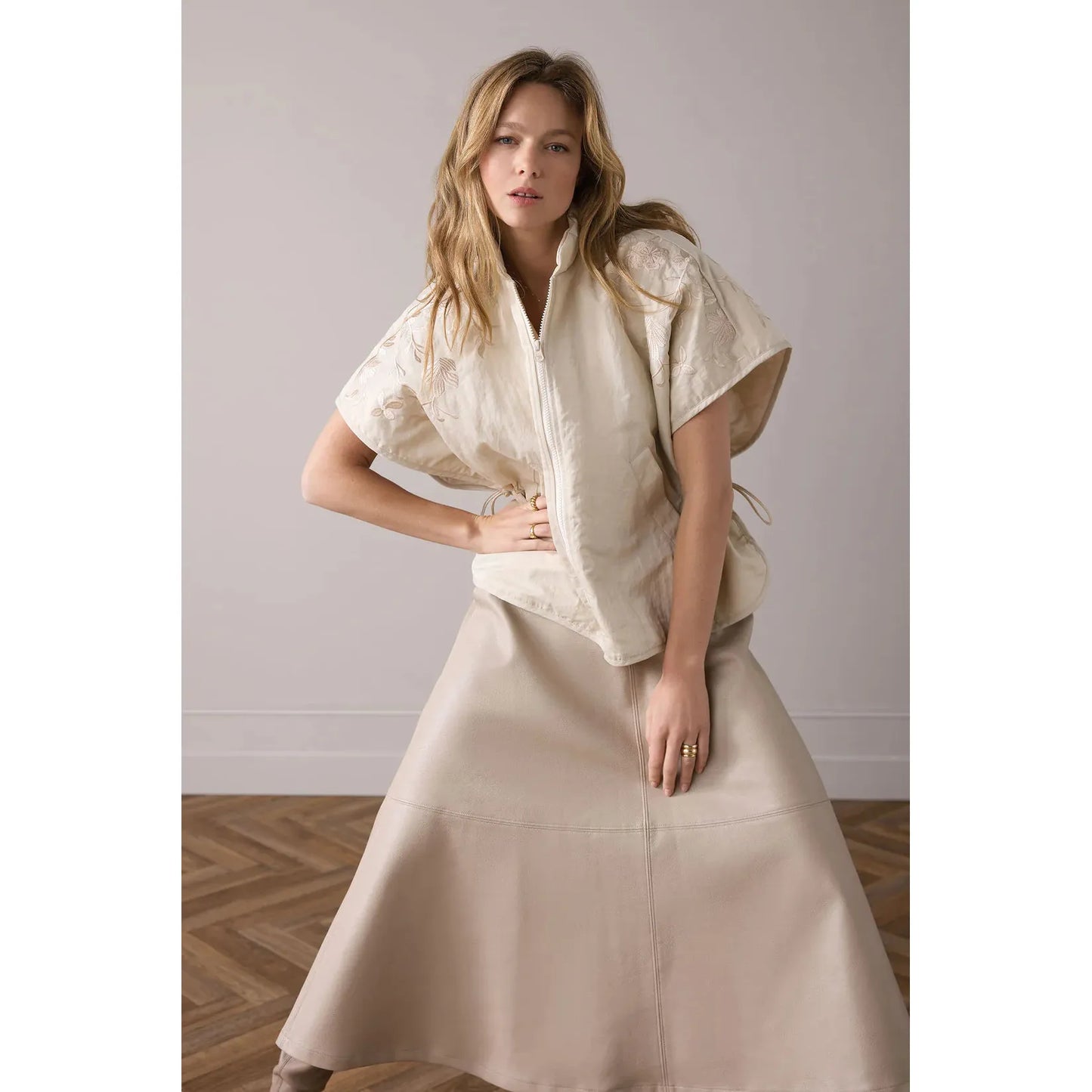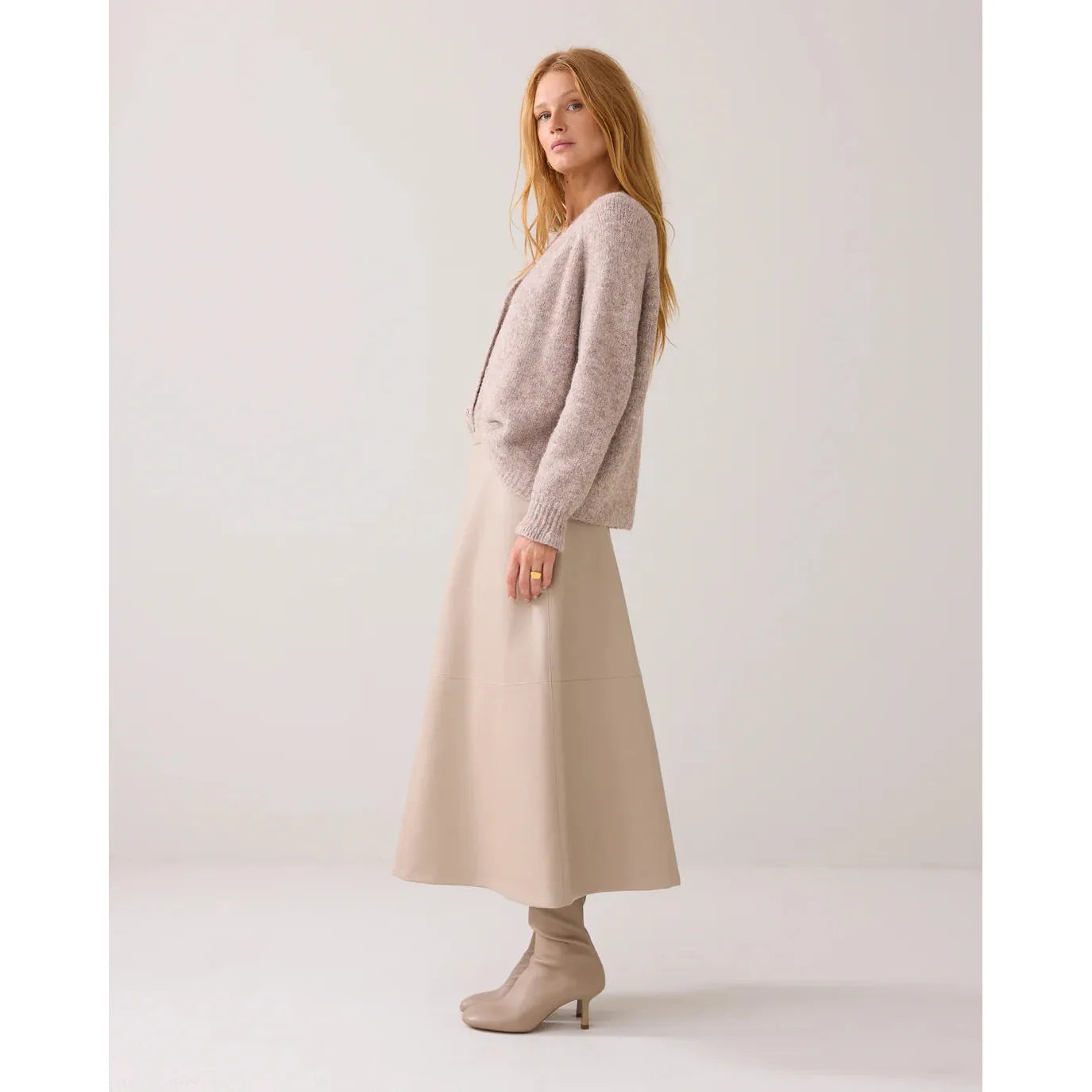 Summum Beige Faux Leather A-Line Skirt with Seams and Pockets