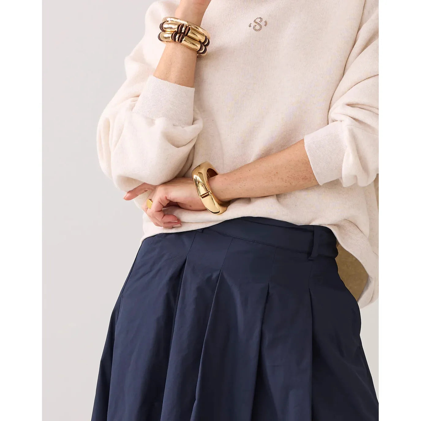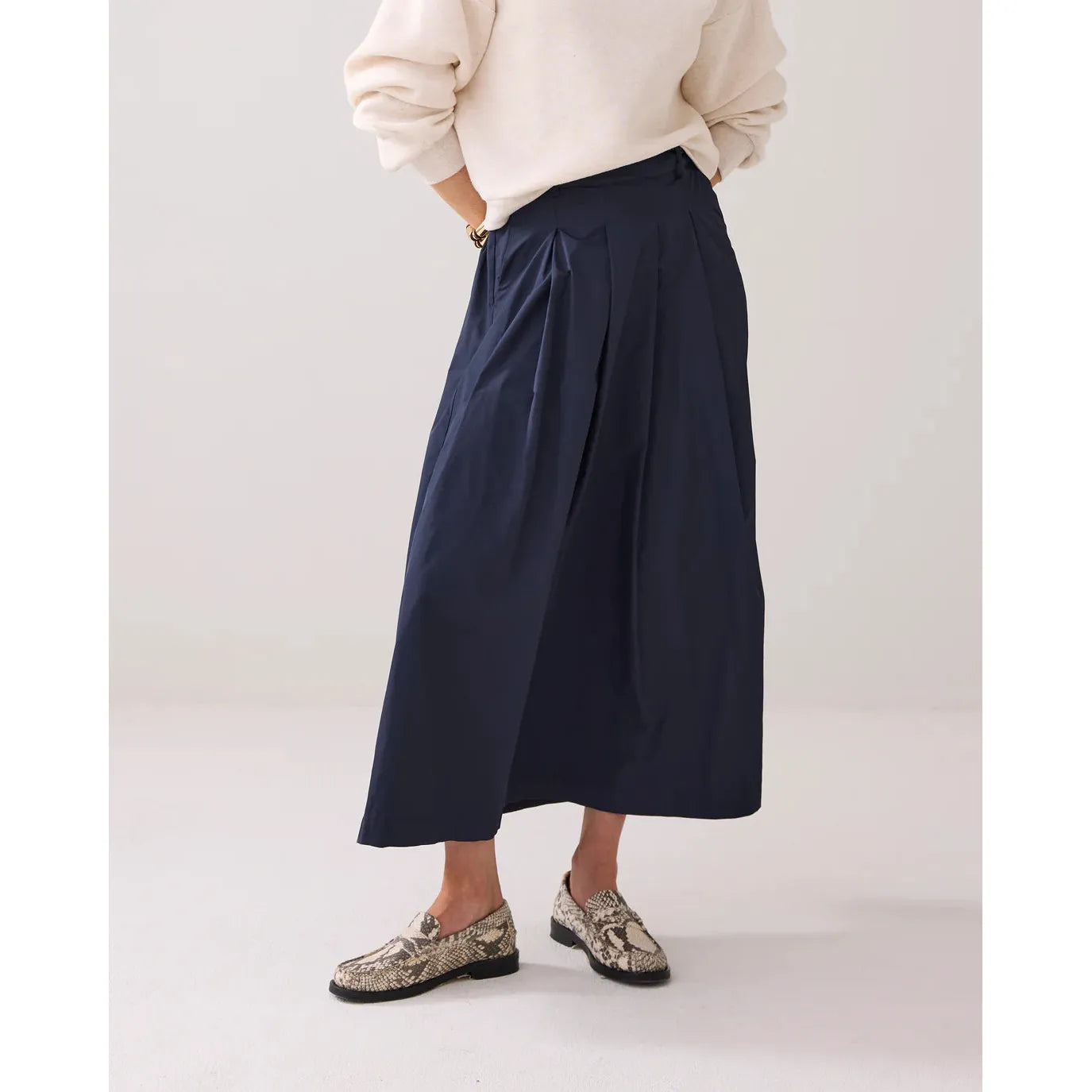 Summum Taffeta Pleated Skirt with Elastic Back and Slit Pockets Midnight Blue