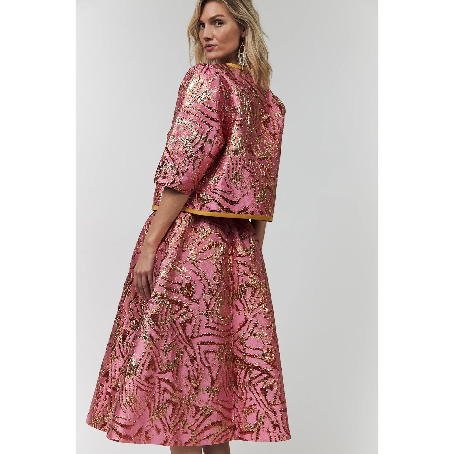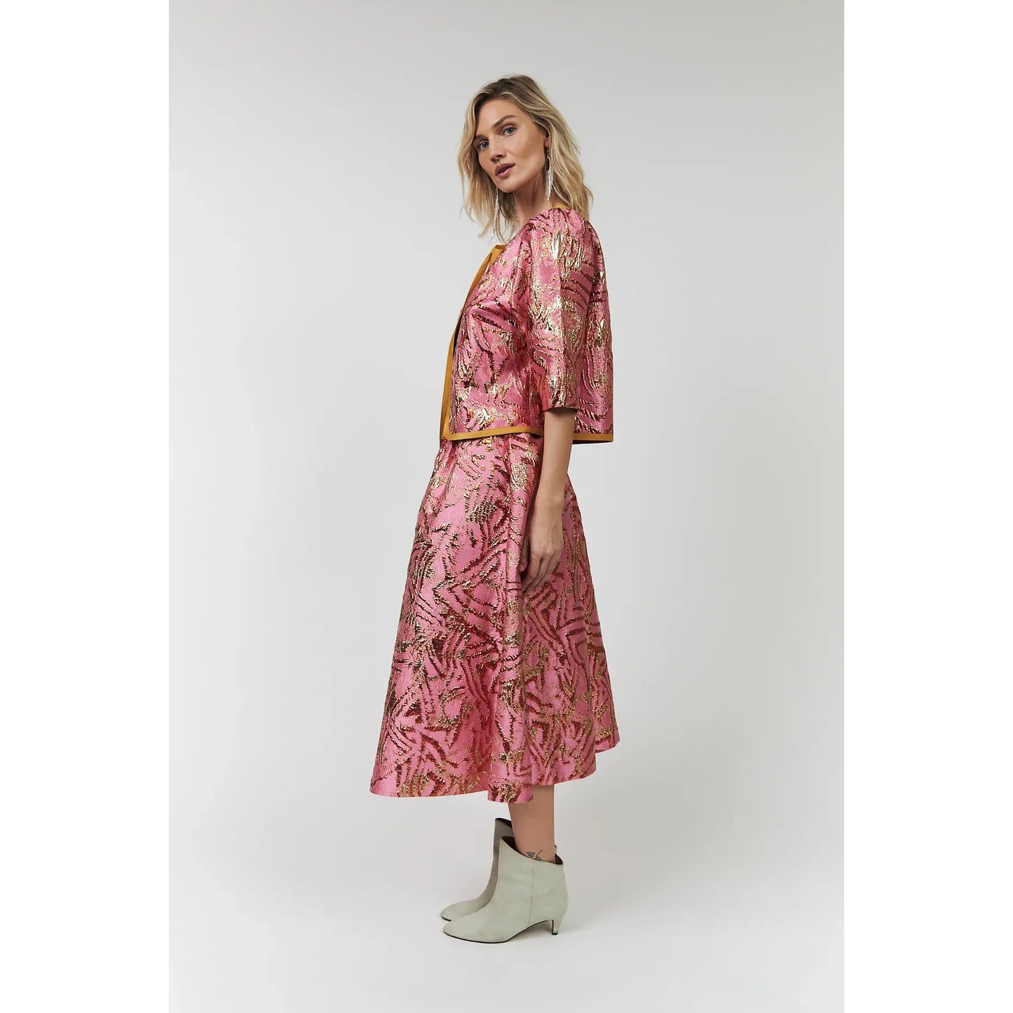 Lollys Laundry Trine Short Jacket – Pink & Gold Jacquard
