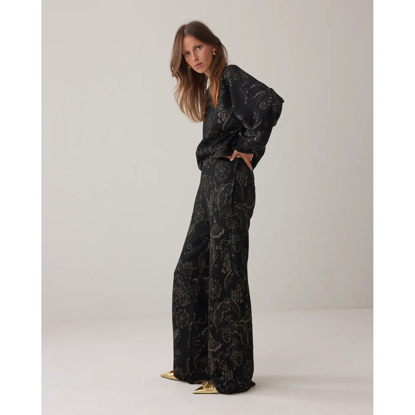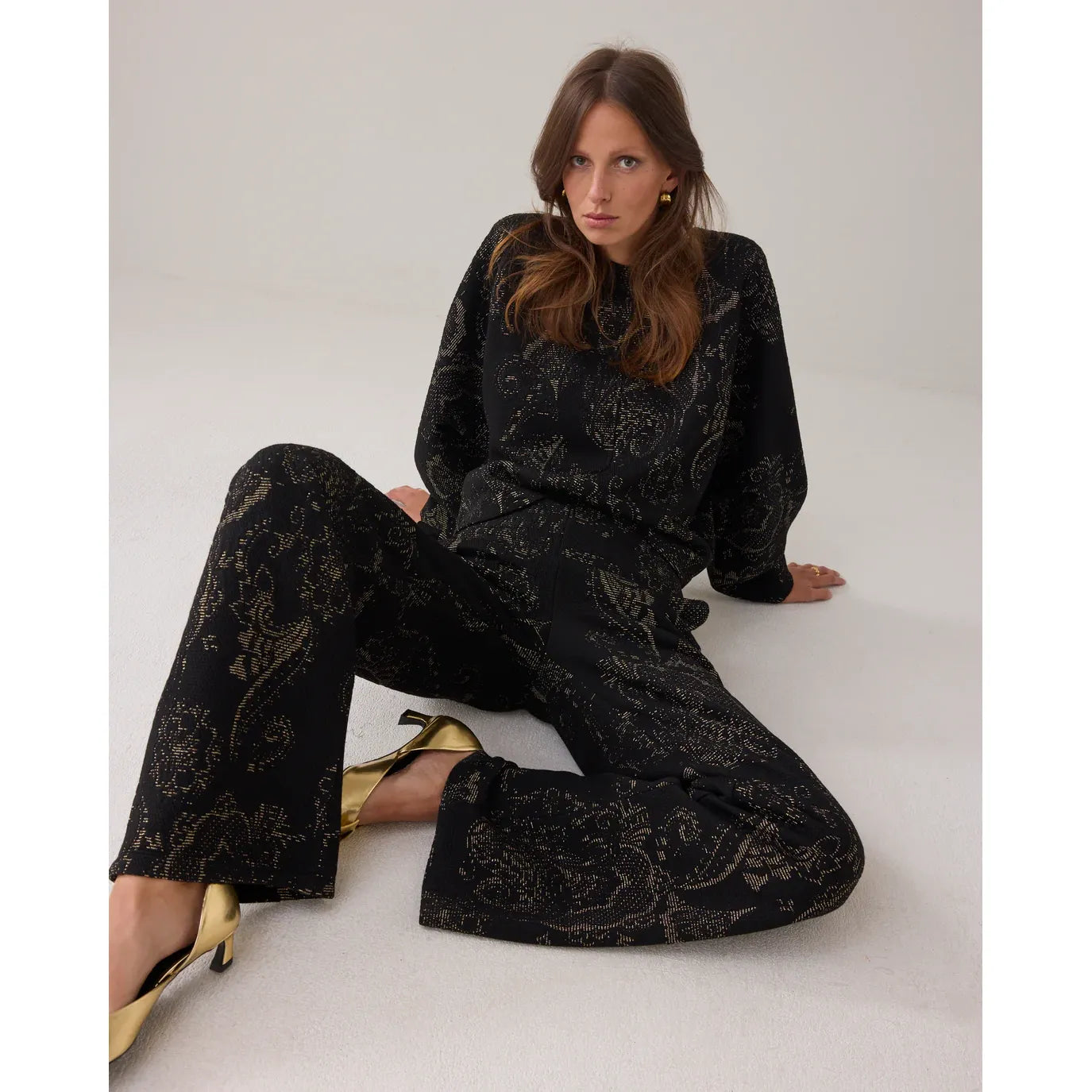 Summum Foam Jacquard Wide Leg Trousers – Black