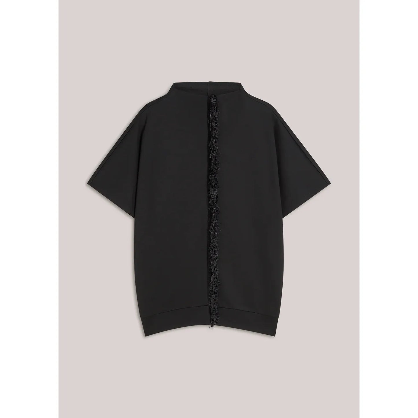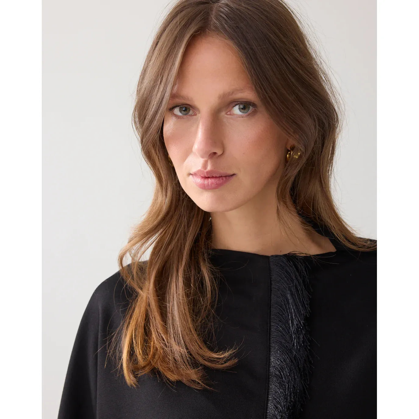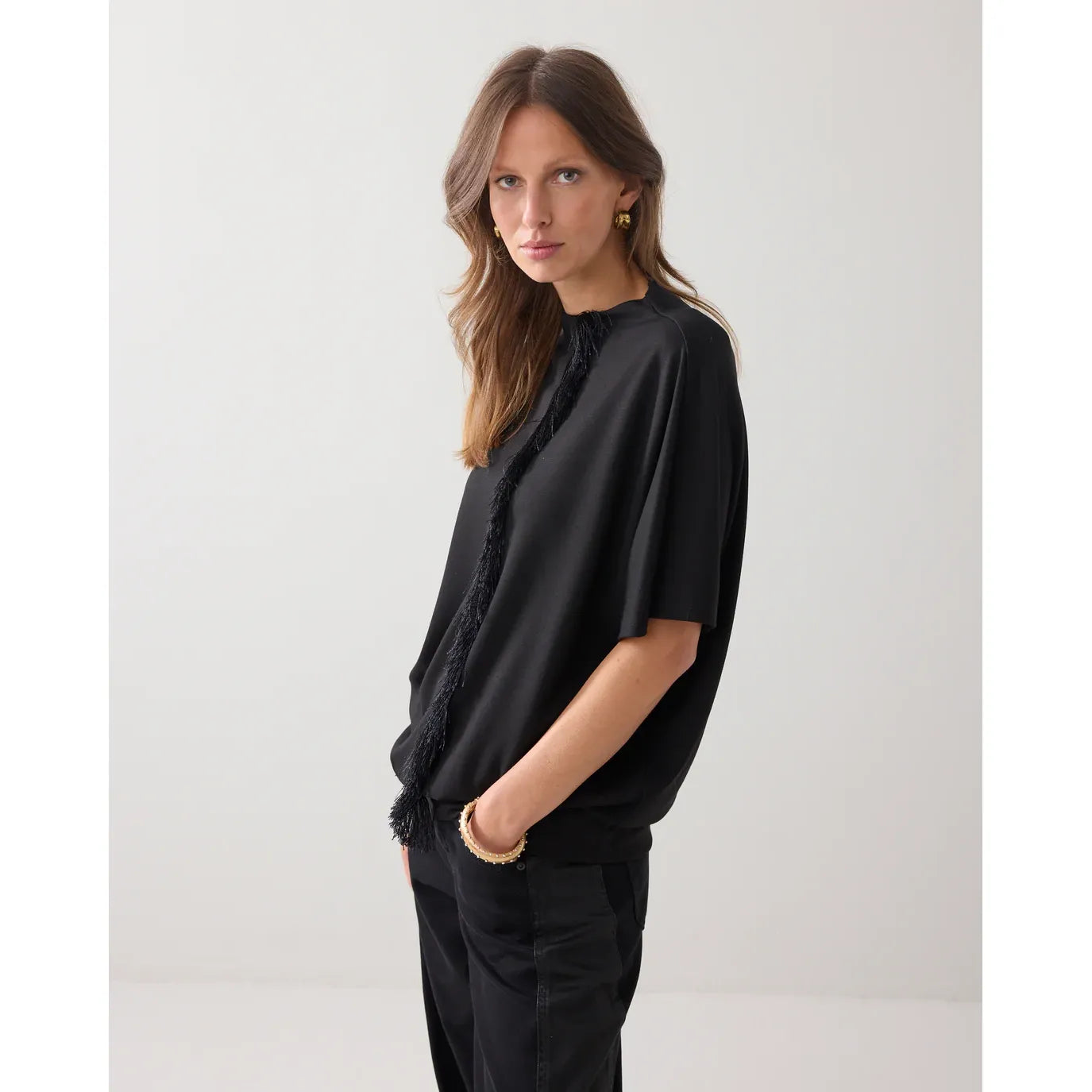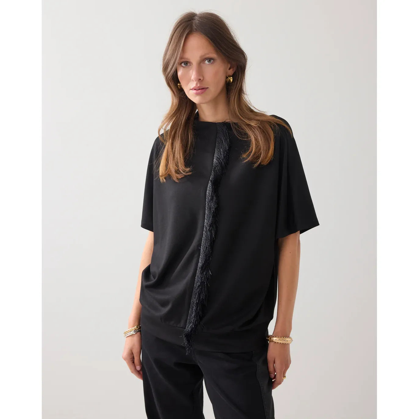 Summum Oversized Jersey Top with Fringe Detail – Black