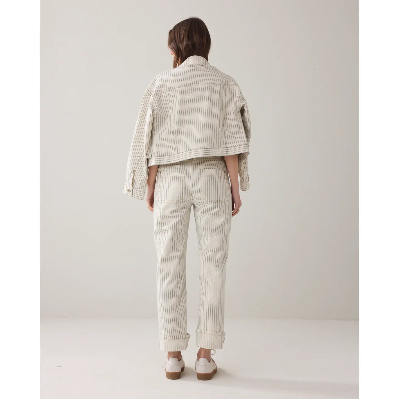 Effortless and quietly stylish, these trousers feel considered without being fussy. The herringbone stripe adds depth and interest while remaining neutral, making them easy to style with knits, shirts or the matching jacket for a modern co-ord moment.