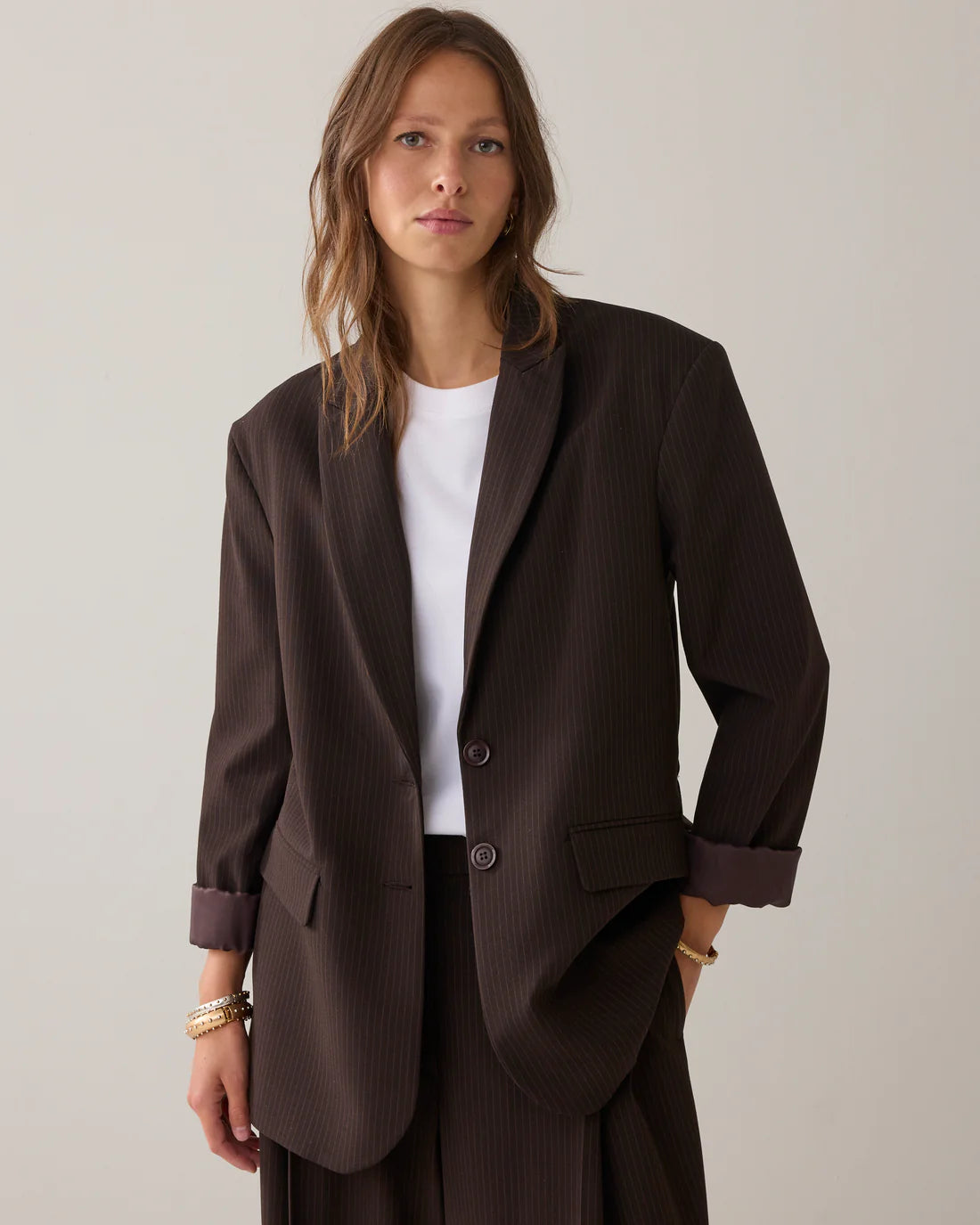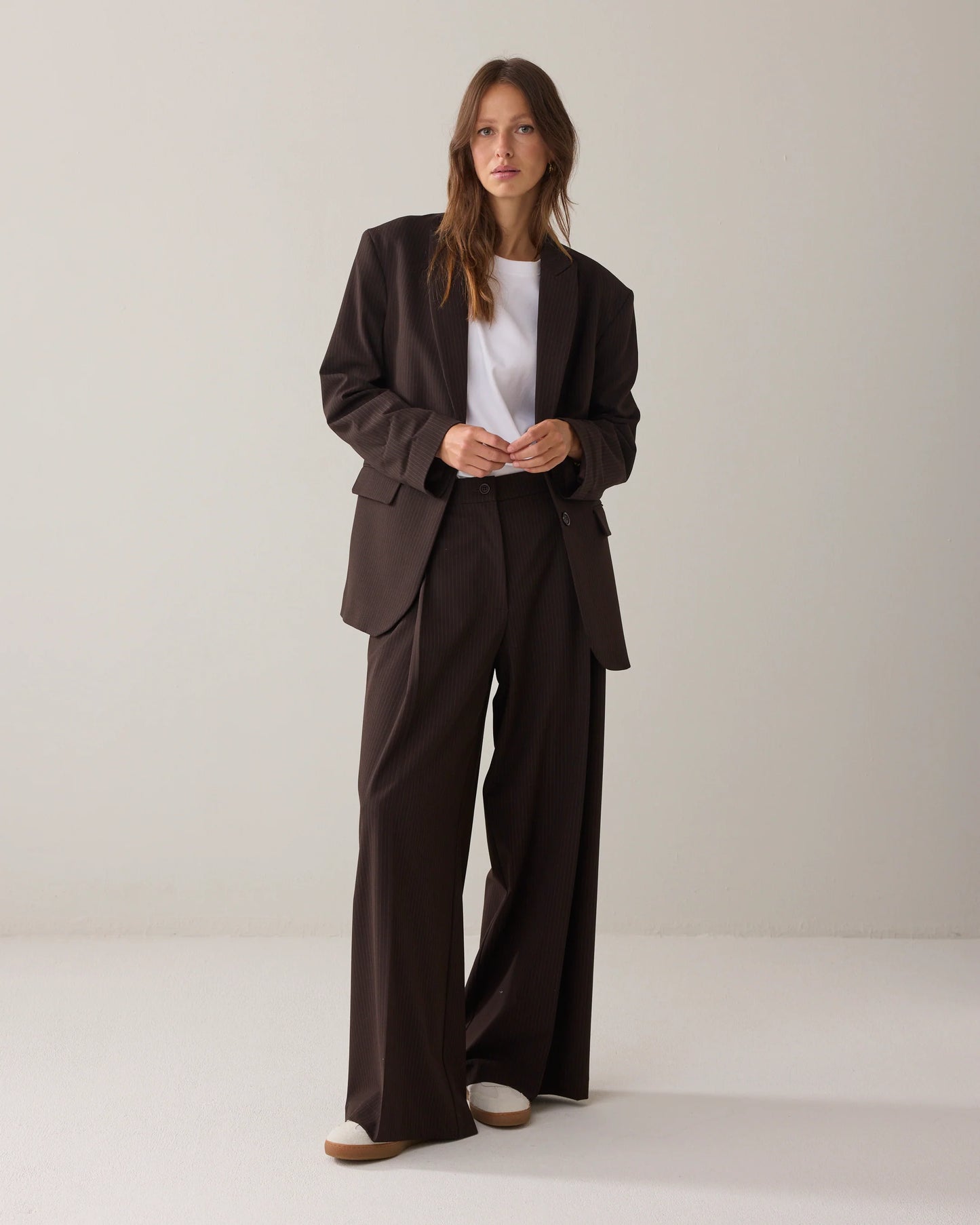 Summum Wide-Leg Pinstripe Trousers – Dark Chocolate