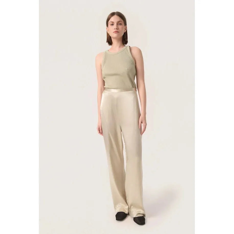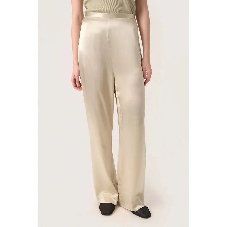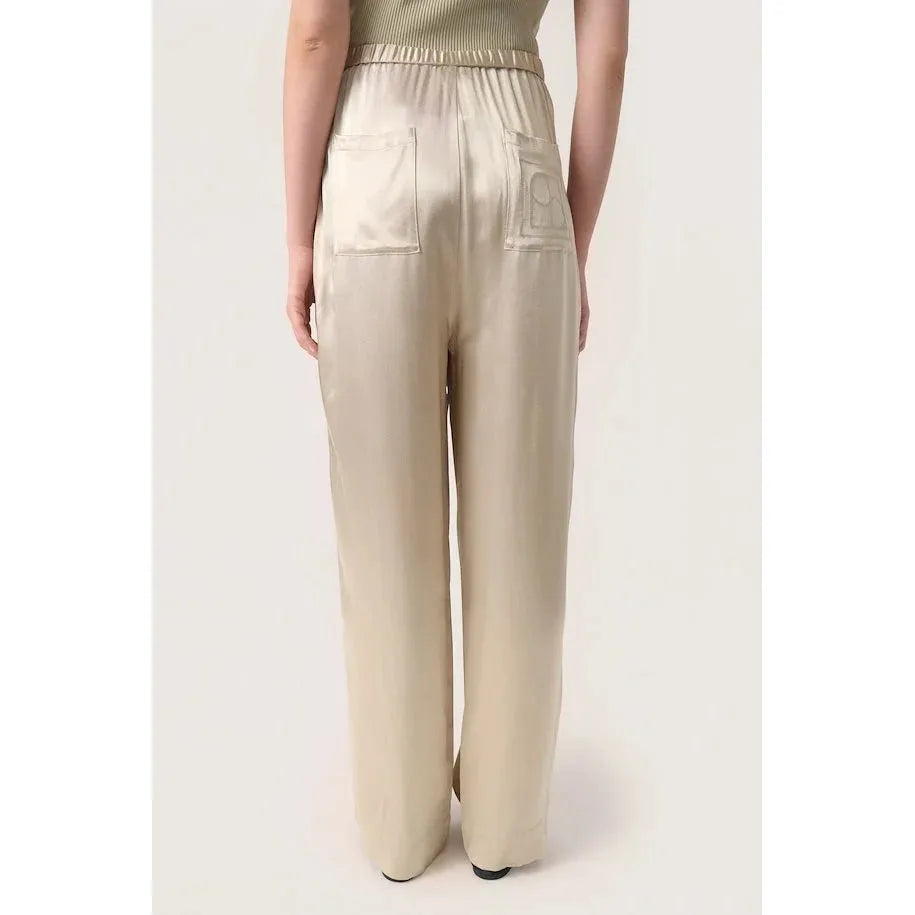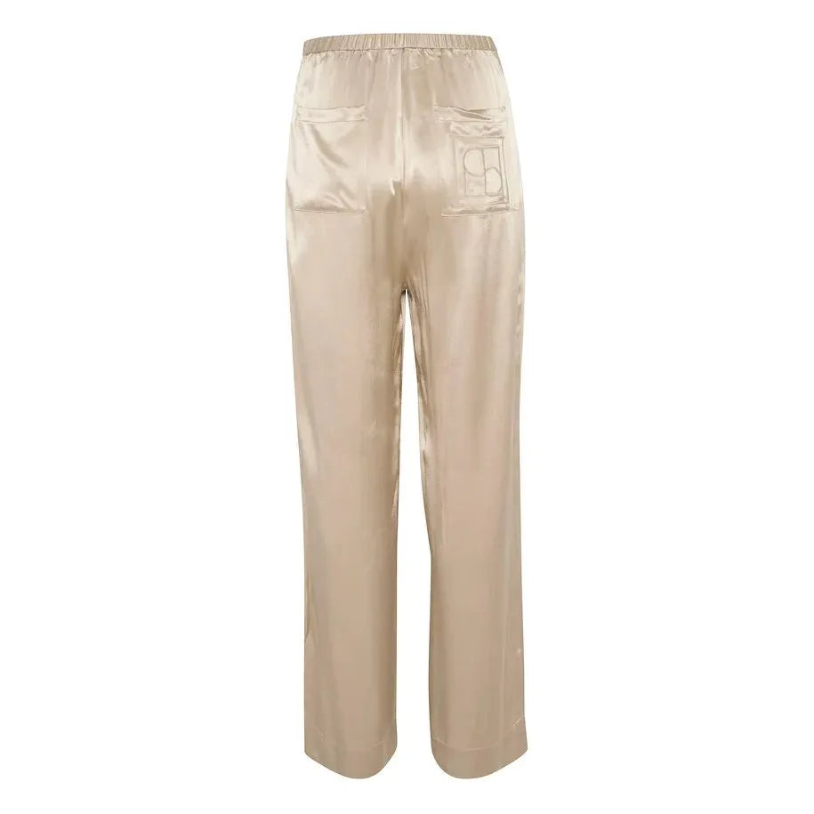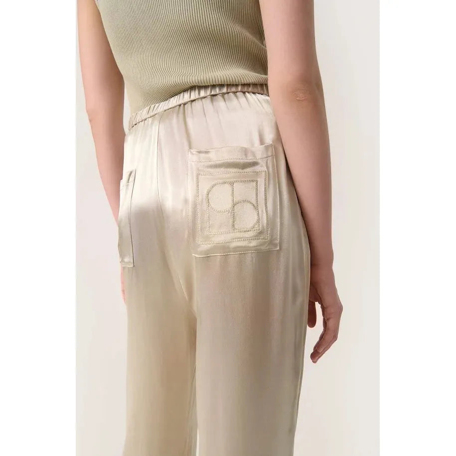Long loose pants in regular fit. The pants feature elastic at the back of the waist and a monogram on one back pocket. The model is 176 cm tall and wears size M.